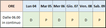 1. In continuo, dalle ore 06.00 del 04/05 alle ore 22.00 del 09/05;
